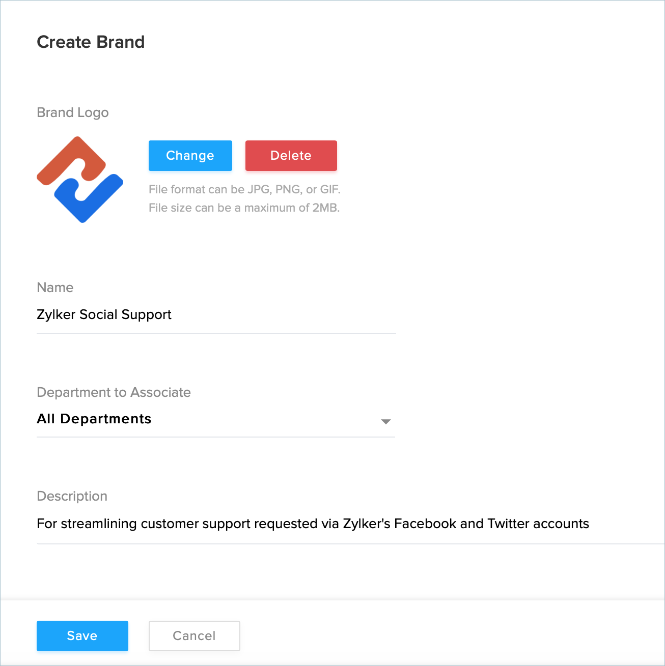 Agora você pode visualizar o feed de mídia social da sua marca / organização na página da marca e converter automaticamente ou manualmente postagens, mensagens e menções @ em tickets.