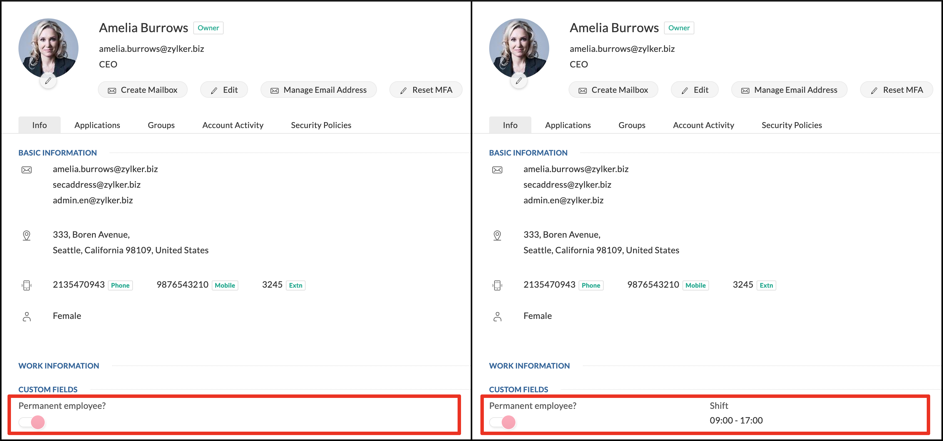 Adicionar campo Faça login no Zoho One e clique em Diretório no menu de navegação à esquerda; Acesse Usuários e clique em Gerenciar campos; Clique em Adicionar campo personalizado; Nomeie o campo e escolha um tipo de campo; Preencha o limite máximo ...